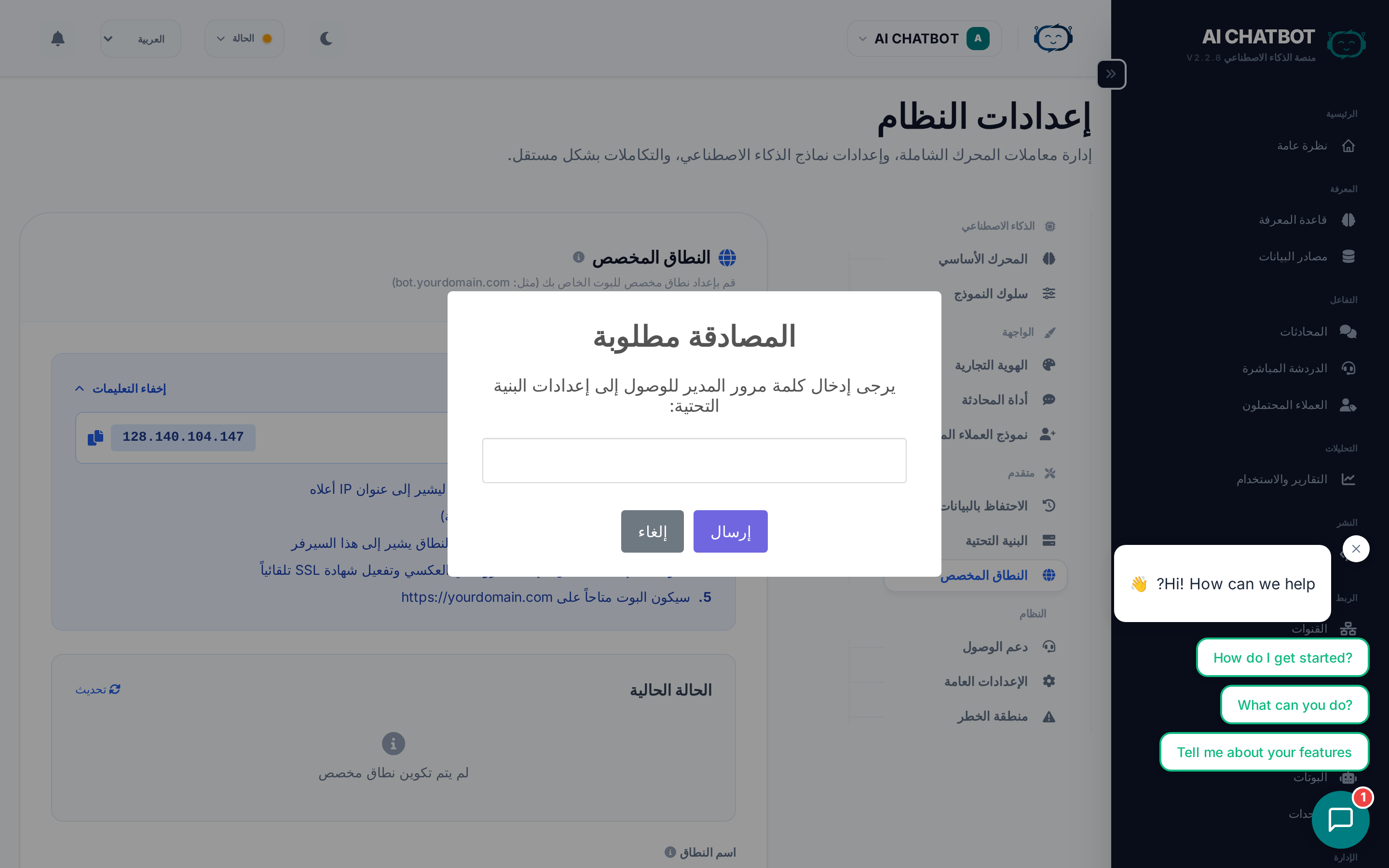 تتيح لك النطاقات المخصصة تشغيل البوت الخاص بك عبر رابط يحمل علامتك التجارية مثل https://bot.yourcompany.com بدلاً من استخدام عنوان IP مع رقم منفذ (Port). يتم الإعداد بشكل آلي من لوحة التحكم، دون الحاجة لاستخدام واجهة السطور البرمجية (Command-line).