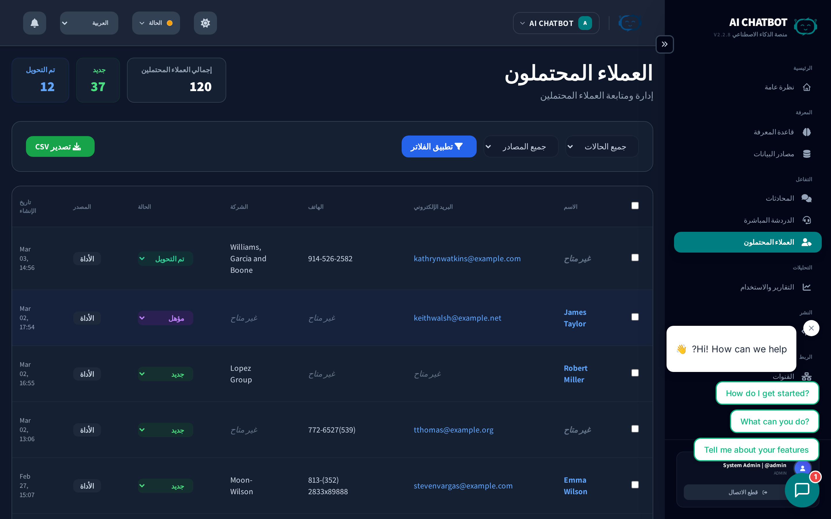 افتح أي عميل محتمل لرؤية الصورة الكاملة: