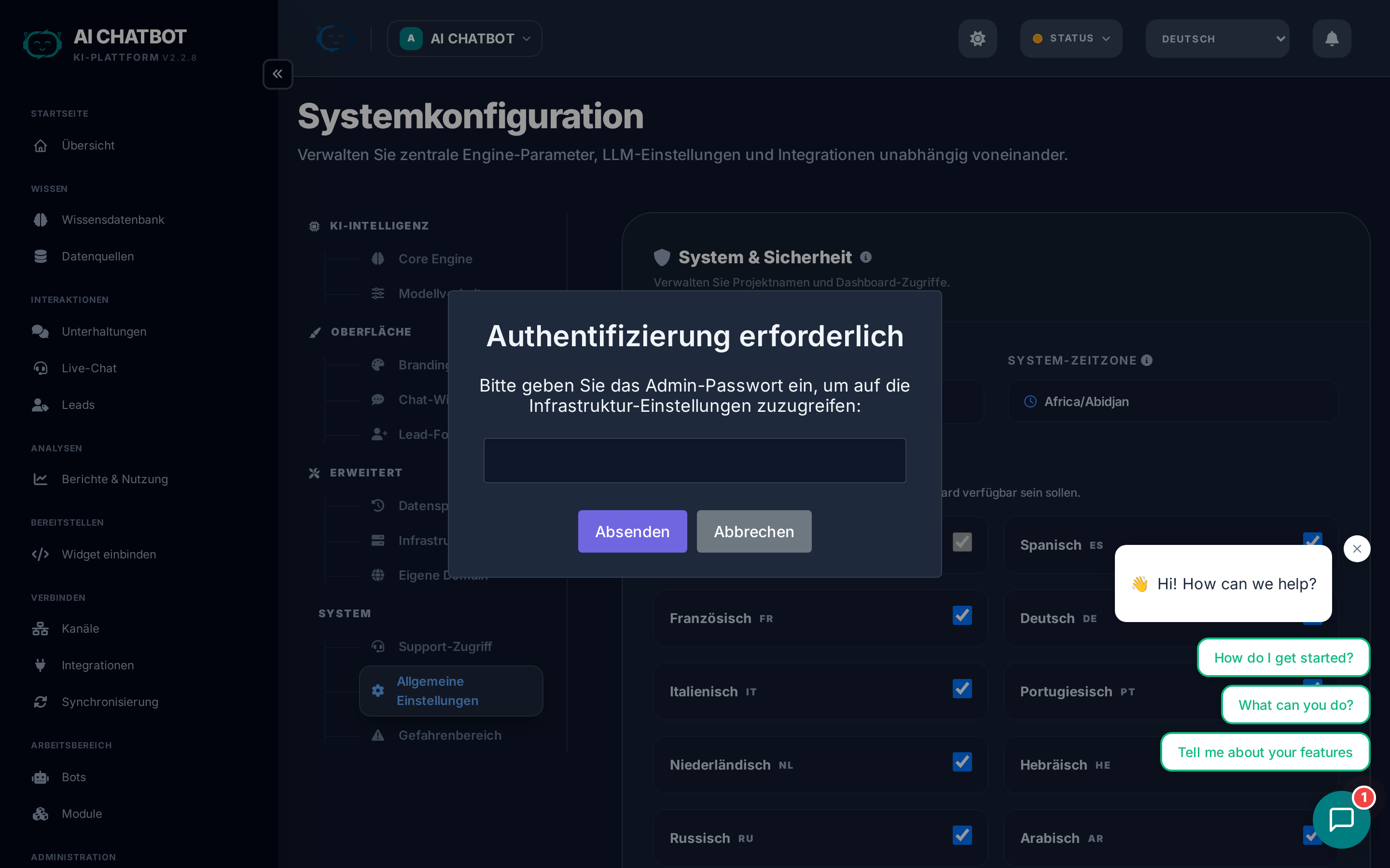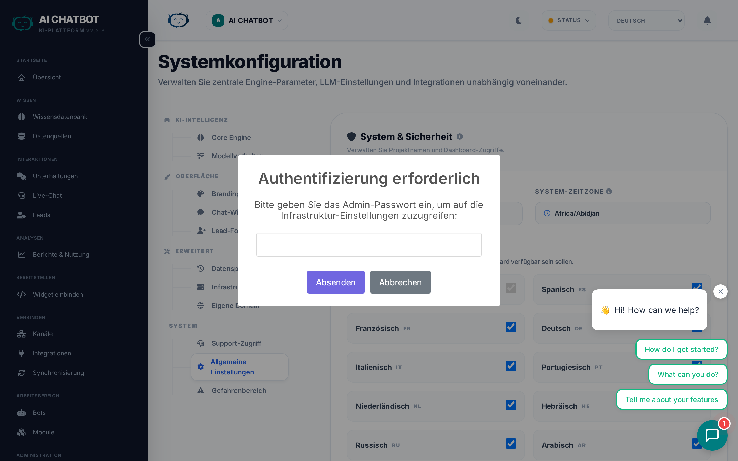 | System Timezone | Steuert Zeitstempel in Logs, Reports und Chats | Auf Ihre Geschäftszeitzone für genaue Reports einstellen |
