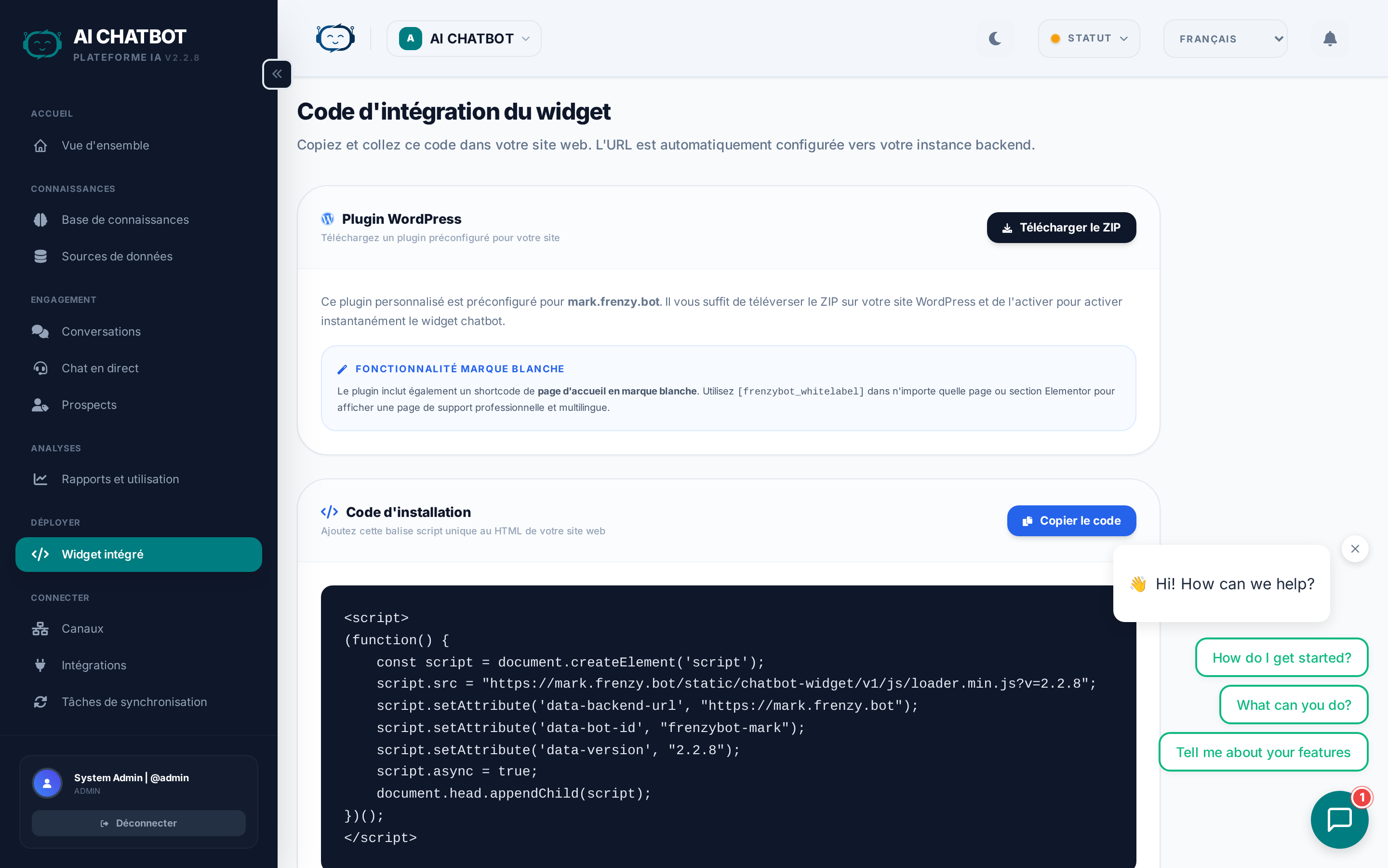 Pour plus de détails, consultez Widget & Code d'intégration.