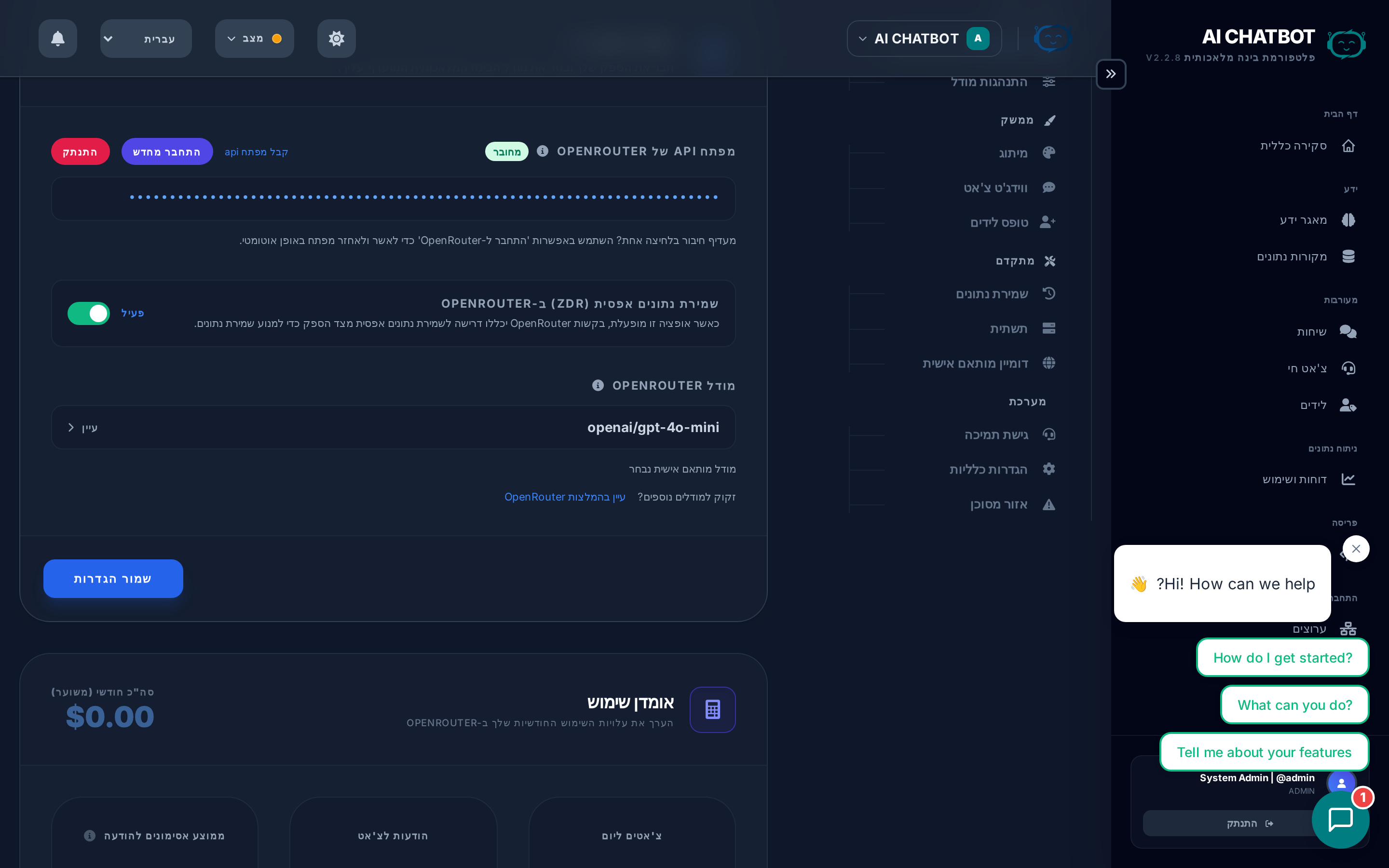 לא כל המודלים תומכים ב-ZDR. כשזה מופעל, FRENZY.BOT מנתב אוטומטית בקשות רק לספקים שמכבדים את מדיניות zero data retention. בדוק את תיעוד ה-ZDR של OpenRouter לרשימה עדכנית.
