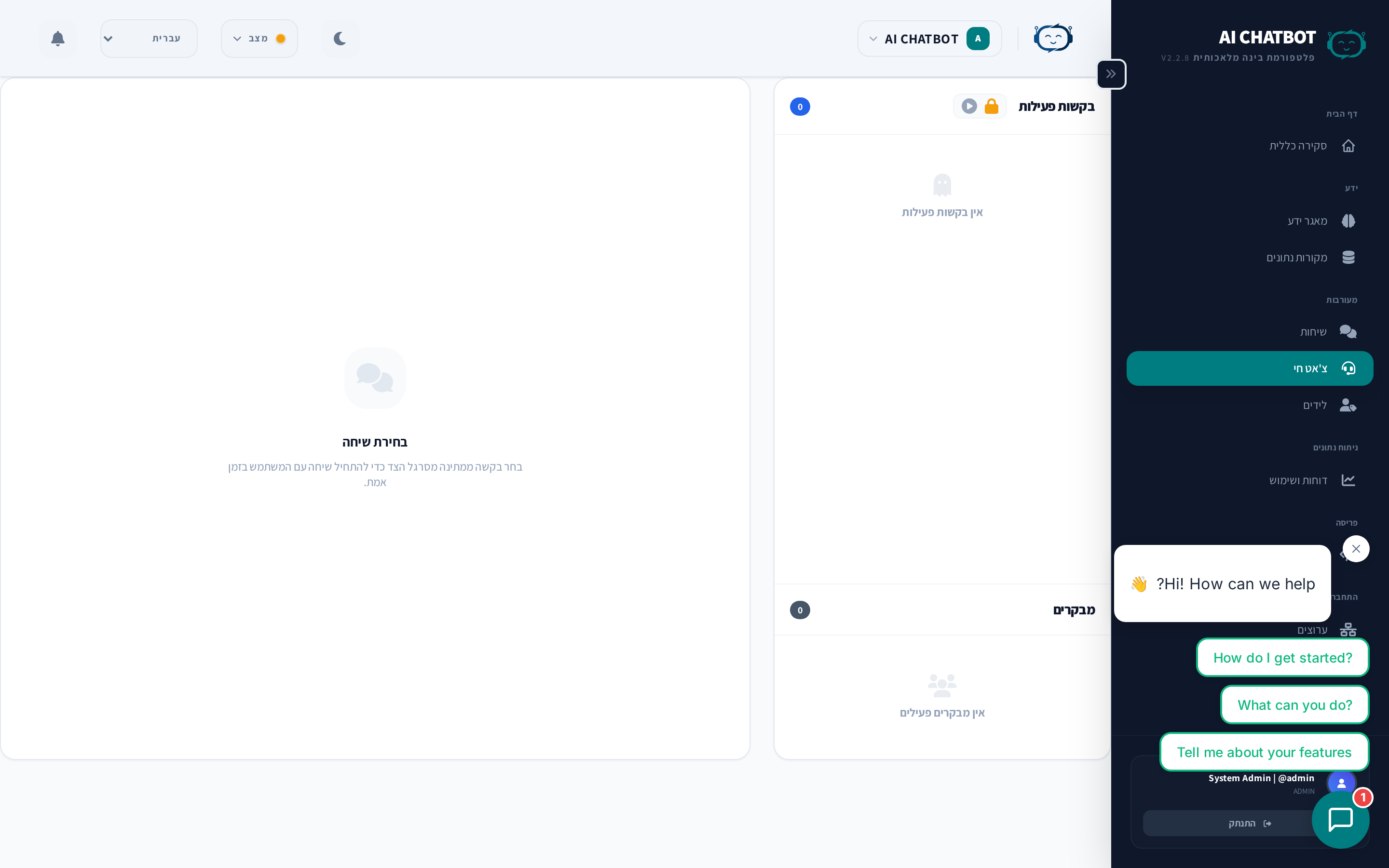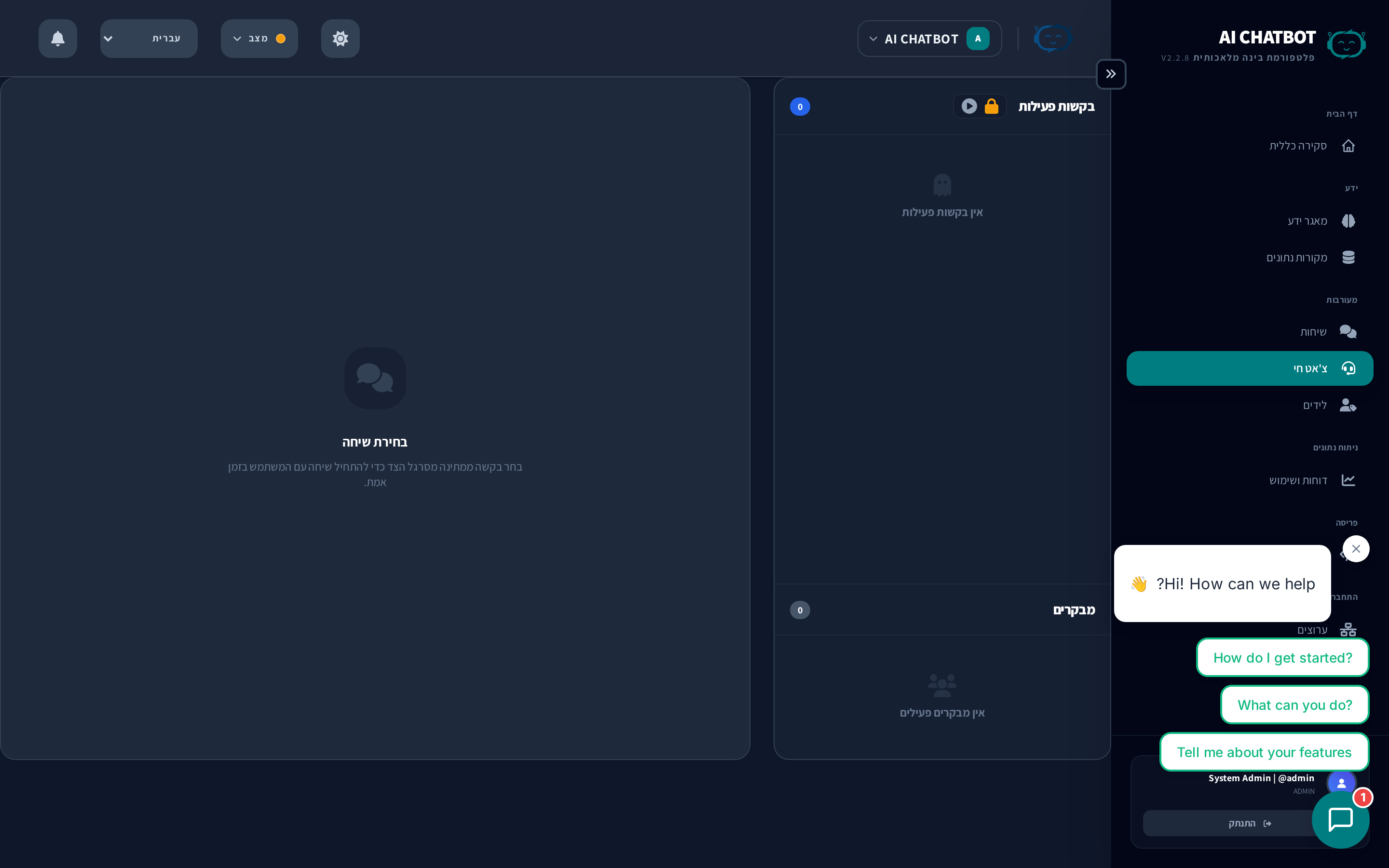 - אימייל — קבל התראה כאשר משתמש מבקש נציג אנושי.