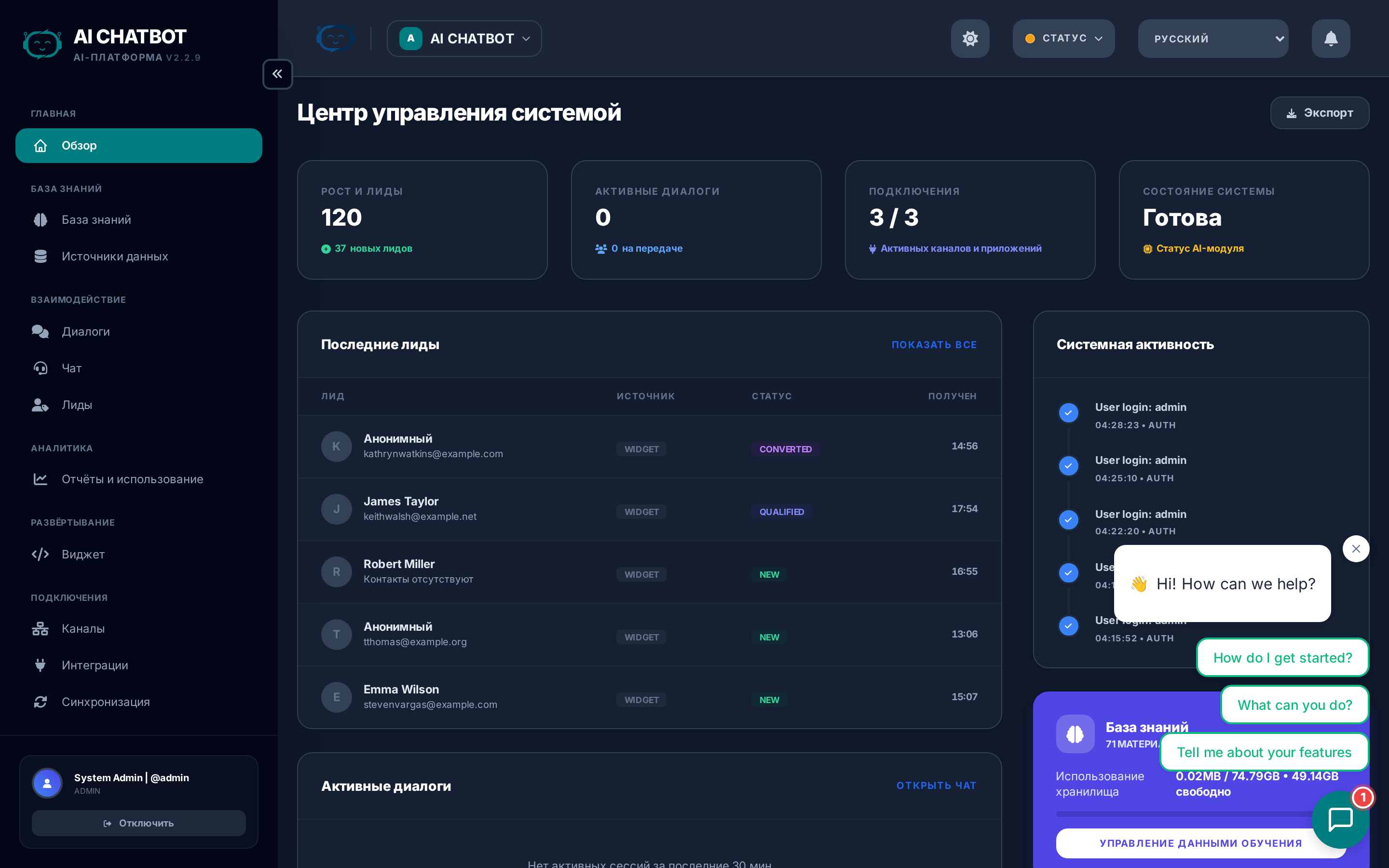 Что это дает: Полный доступ к центру управления, где вы настраиваете всё — модели ИИ, базу знаний, брендинг, интеграции и доступ для команды.